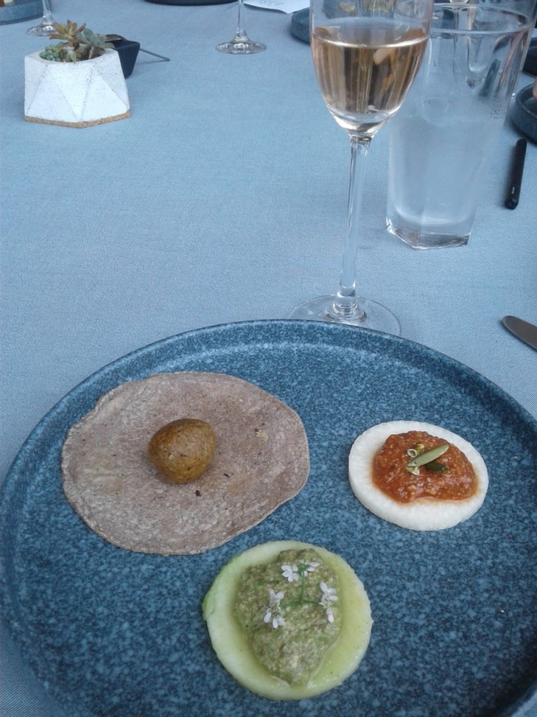 “Un Viaje por México” se compone de ocho platillos creados por el extraordinario Chef en exclusiva para el Restaurante El Lago, y cada uno de ellos es una sorpresa. El viaje inicia con la cultura totonaca mediante un Chile de Bola, a base de pepita de calabaza con chile seco sobre tortilla de maiz que sorprende por su textura diferente y exótico sabor; le siguió la purépecha Tzirita, preparada con pepita de calabaza, cilantro, hierbabuena y chile verde sobre manzana; continunado con la maya a través de una Sikil Paak, con pepita de calabaza, habanero y jitomate sobre jícama. La fusión de sabores de esta serie es espectacular.