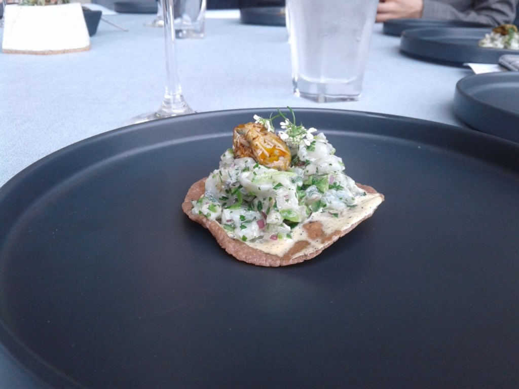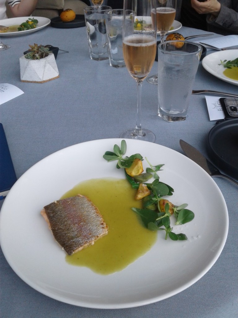 Posteriomente se incluye una Tostada de Ensenada que, sin lugar a dudas, sabe a Ensenada, elaborada con tartar de camarón azul del Pacífico y ostión ahumado con mayonesa de ailiums y chile seco; y las sopresas continuaron con un Tamal Colado con pulpa de jaiba y calabaza de castilla con jaiba suave frita, un platillo que es toda una experiencia, de lo mejor que hemos probado; la Trucha de Zitácuaro que se sirve posteriormente también es una delicia, incluye michimole y verduras de la chinanpa de Xochimilco.