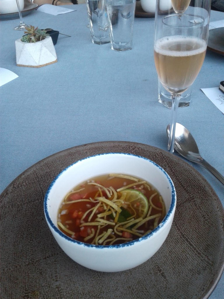 Cabe destacar que las porciones están muy equilibradas para que en su conjunto sea un menú completo, lo cual es necesario aclarar dado que a continuación se sirve un Consomé Aromático a la Lima, que evidentemente hace alusión a la cultura maya; el Cordero en Chilhuacle es quizás una de las propuestas que más llaman la atención, es una obra de la gastronomía que amalgama exquisitas costillas de cordero con chile de Oaxaca sobre guayaba rosa, por lo que este color predomina en la preparación, dándole un toque extremadamente exótico y delicioso.