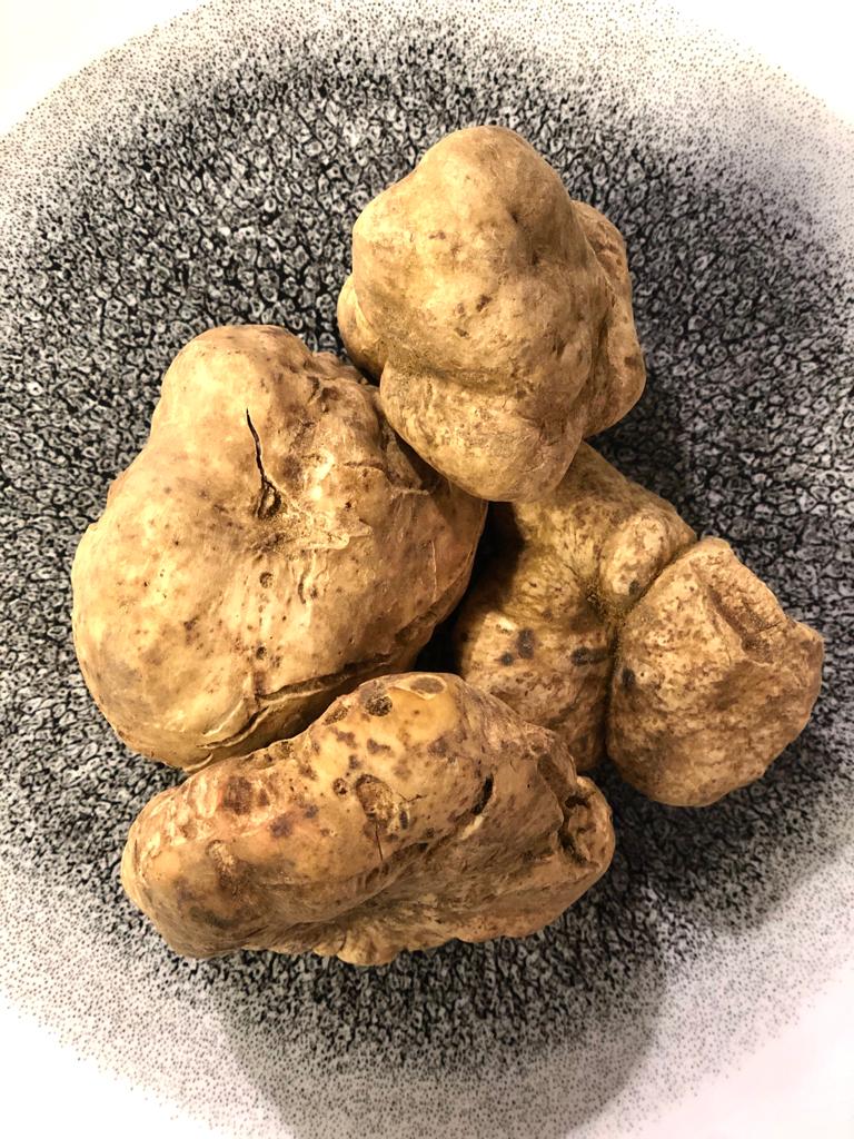 Este hongo nace de manera silvestre principalmente en la región del Piamonte Italiano y se recolecta sólo en la temporada de otoño, para lo que son necesarios perros adiestrados cuya sensibilidad olfativa es capaz de reconocer el aroma de la trufa no importando qué tan enterrada se encuentre, y los cerdos, por naturaleza, son también capaces de encontrarla, aunque no son muy utilizados pues una vez que la encuentran se la comen.