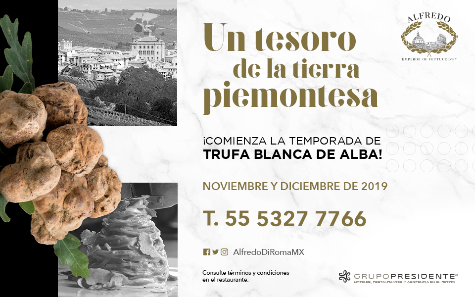 Una buena noticia para los amantes de buen comer es que estamos en plena temporada de trufa blanca, la cual se registra durante los meses de noviembre y diciembre, por lo que algunos de los más exclusivos establecimientos cuentan con esta especie de hongo, como es el caso del restaurante Alfredo Di Roma.