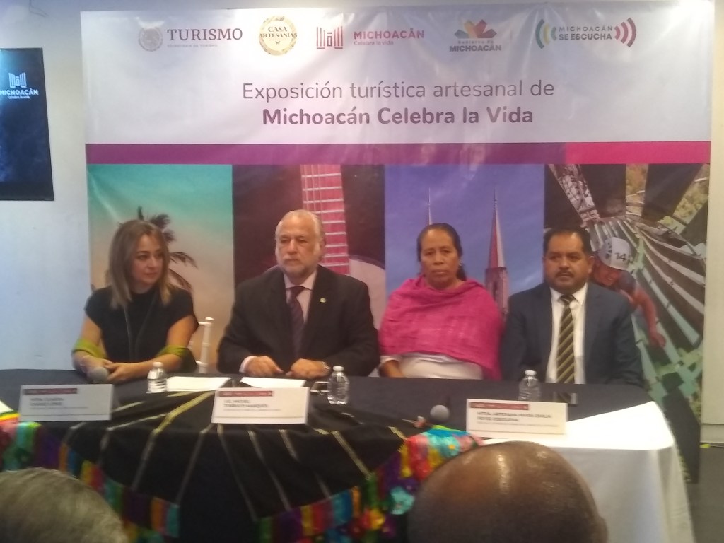 Durante el acto, María Emilia y Lupillo estuvieron también compartiendo el presídium en representación de los astesanos michoacanos, donde la funcionaria estatal comentó que, derivado de la suma de esfuerzos entre la Secretaría de Turismo estatal y el Instituto del Artesano Michoacano, fue posible que artífices de diferentes regiones exhiban su artesanía en esta oportunidad para darla a conocer y venderla en la capital del país.