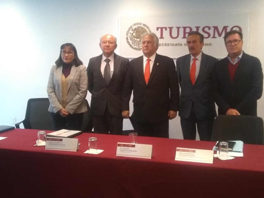 Durante la reunión con los medios de información en el espacio Punto México, el titular de la SECTUR estuvo acompañado por la Directora de Finanzas del organismo, Sandra Berenice Meza; Humberto Hernández Haddad, Subsecretario de Calidad y Regulación; Alejandro Aguilera Gómez, Subsecretario de Planeación y Política Turística; y Marcos Achar Levy.