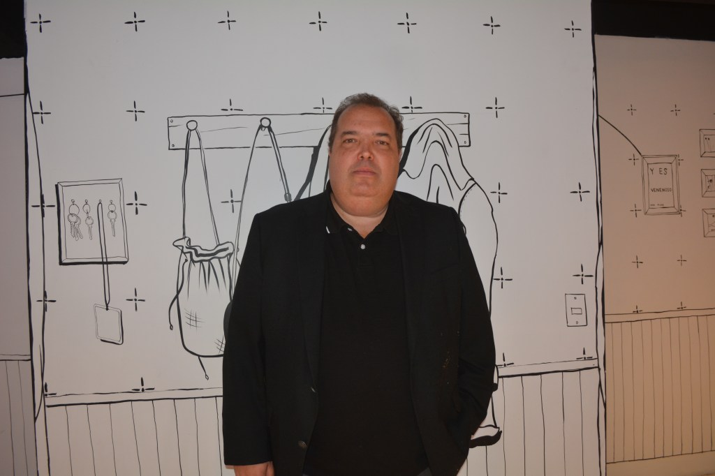 Se trata de un recorrido a través de ocho espacios, que inicia con una cafetería-bar muy sui géneris, que parte de su mobiliario está dibujado en la pared, alternado con imágenes en pantallas.