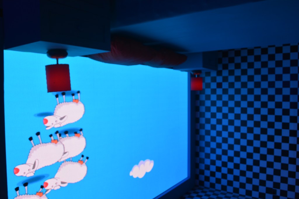 Continuando con la visita de las siguientes siete salas, lo que se encuentra a la entrada de la primera es un leyenda que dice: “que apaguen las luces y enciendan las estrellas”; otro de los espacios se llama “noche de insomnio”.