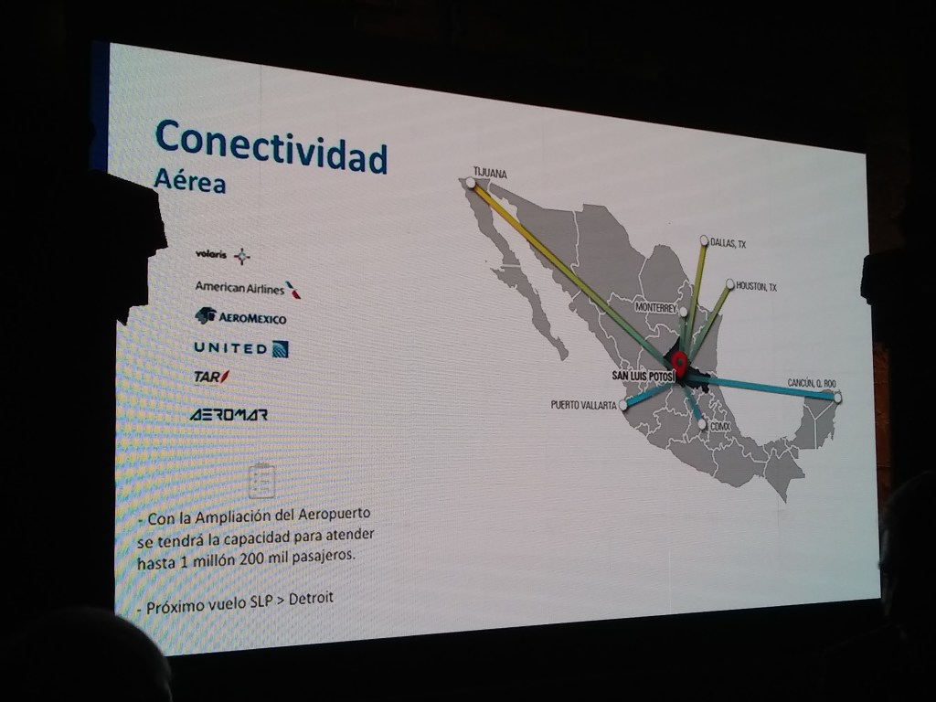 Durante el evento, Esper Sulaimán comentó que “se está registrando un nuevo ciclo de conectividad aérea en San Luis Potosí, lo que facilitará la llegada de visitantes. Los vuelos corresponderán al aeropuerto de Tamuín. En cuanto al Aeropuerto Internacional “Ponciano Arriaga”, el tráfico total de pasajeros fue de 3 millones 145 mil personas del 2014 al 2019, lo que representan una Tasa Media Anual de Crecimiento de 11.5%, mismo que actualmente se encuentra en proceso de rehabilitación, con lo que crecerá la capacidad de recepción de pasajeros, de 500,000 a un millón 200 mil».