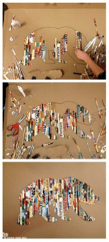 Coloca pegamento dentro de la silueta del animal dibujado y enseguida rellena con las tiras colocándolas de manera vertical de tal manera que no te salgas de la línea, repite hasta rellenar toda la silueta.