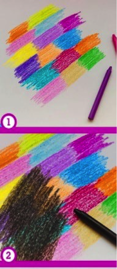 Cuando hayas terminado el primer paso, colorea nuevamente la hoja con crayola negra sobre los colores.