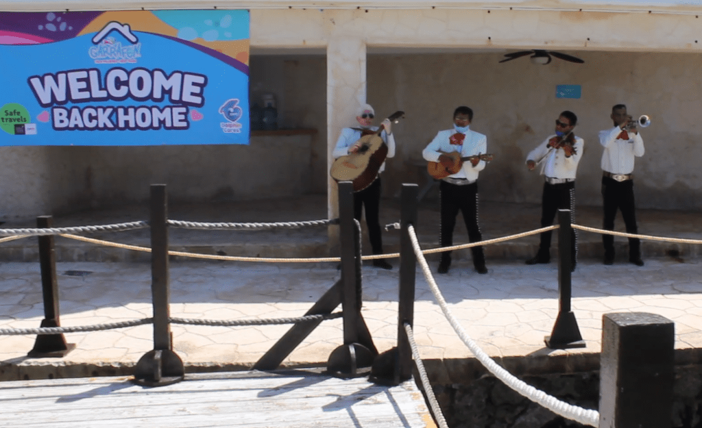 Cancún, Quintana Roo a 04 de julio de 2020.- Con Mariachi, aplausos y porras de alegría, The Dolphin Company reinició la operación de Parque Garrafón este 1º. de julio. Así mismo The Dolphin Company anunció que sus parques Marina Aquatours, ubicada en la Zona Hotelera de Cancún, Dolphin Discovery Isla Mujeres y Dolphin Discovery Puerto Aventuras, reabrieron sus puertas la semana anterior.