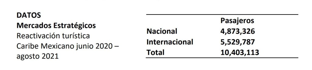Hoy es una realidad. Dieciséis meses después de la reapertura de los destinos turísticos del Caribe Mexicano, desde junio de 2020 a agosto de 2021 han llegado 10, 403, 113 pasajeros a los aeropuertos de Quintana Roo.